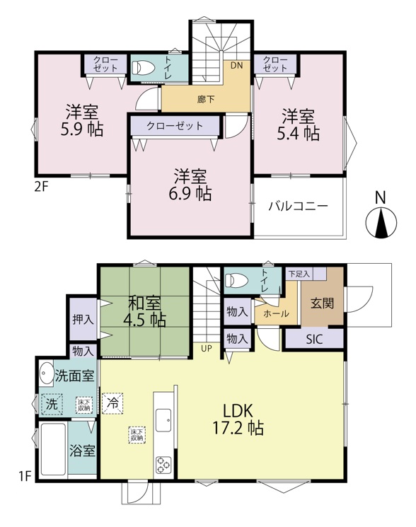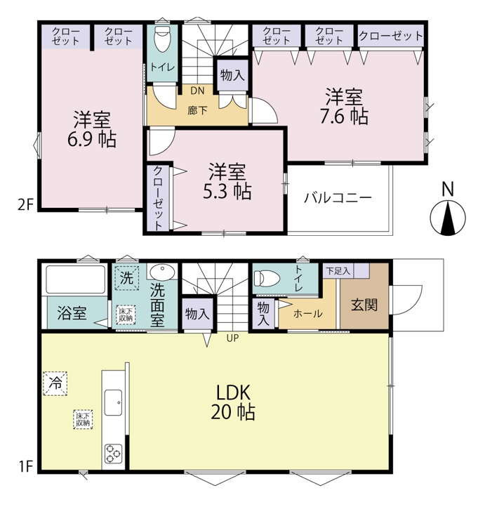 全居室に収納を備えた、収納豊富な間取り。