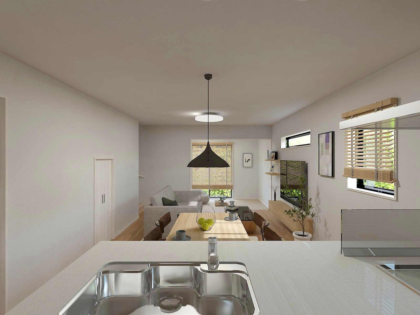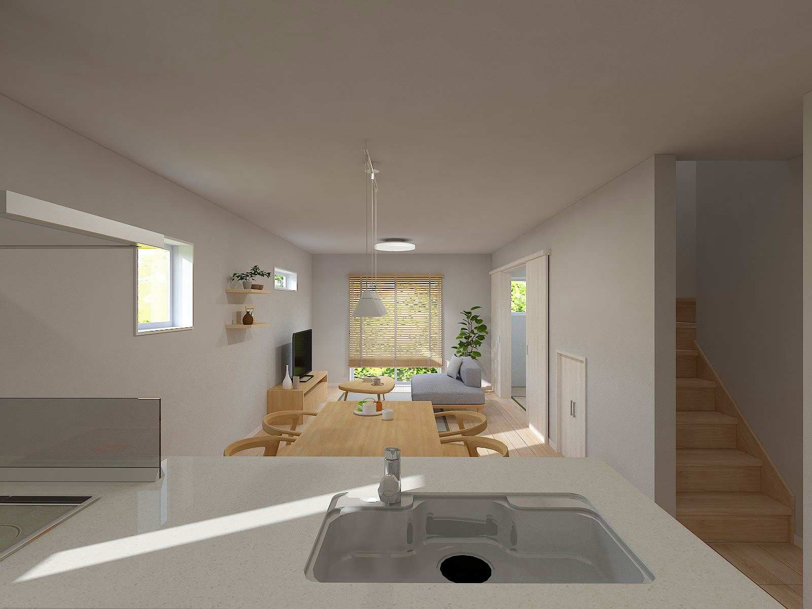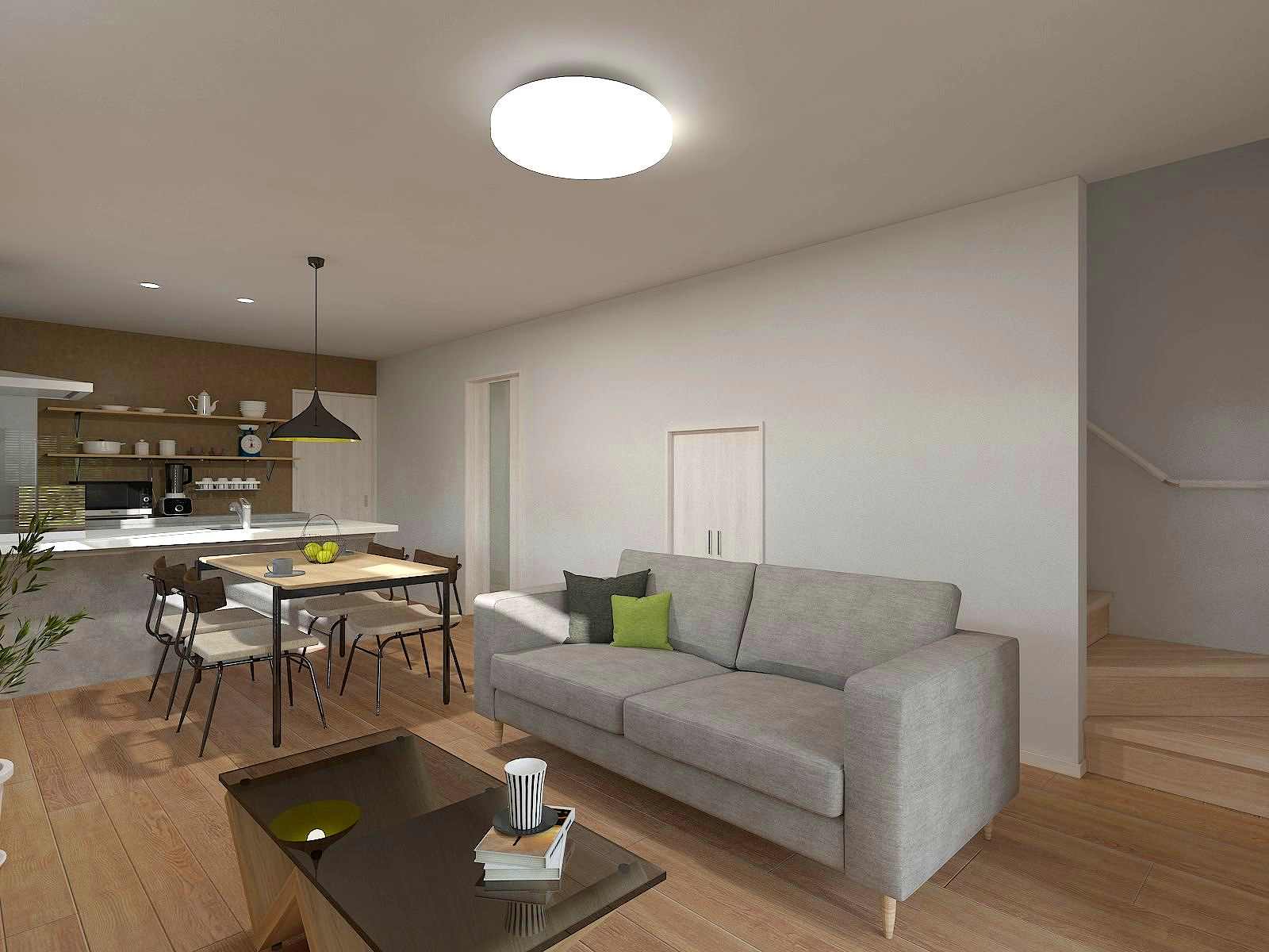対面式キッチンやリビング階段仕様で