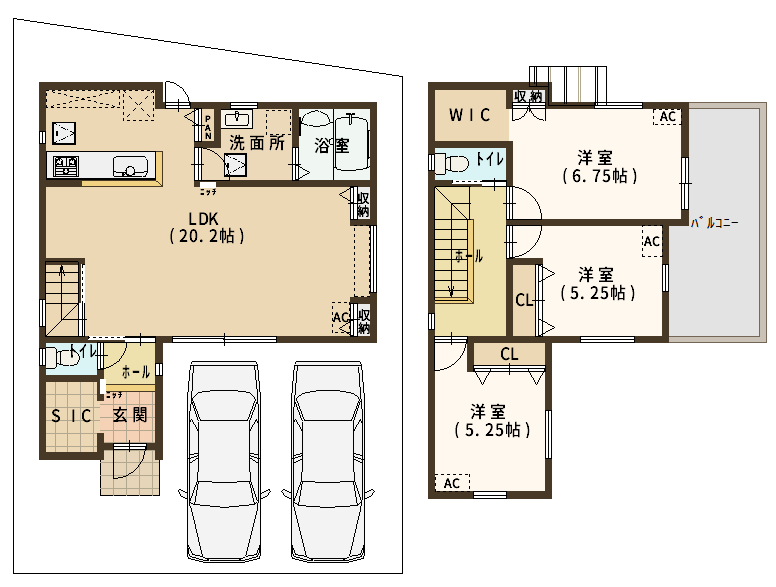 2台分の駐車スペースを