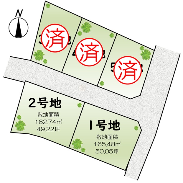 土地面積:165.48㎡(50.05坪)・162.74㎡(49.22坪)
