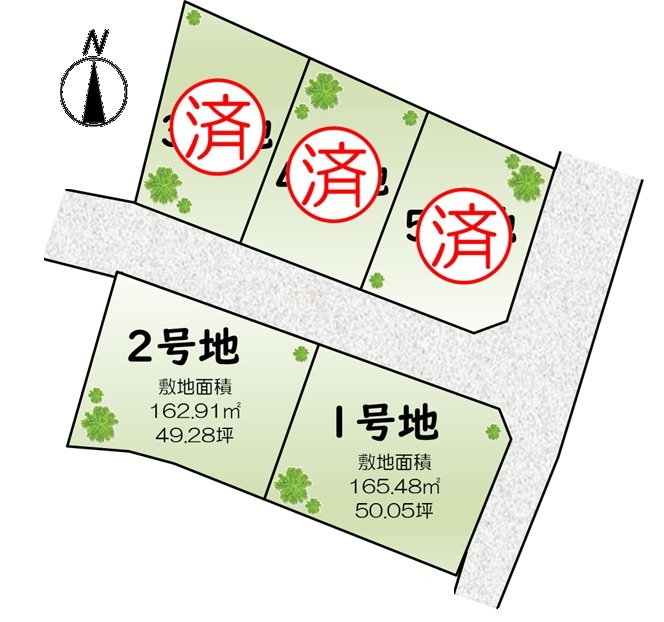 土地面積:165.48㎡(50.05坪)・162.91㎡(49.28坪)