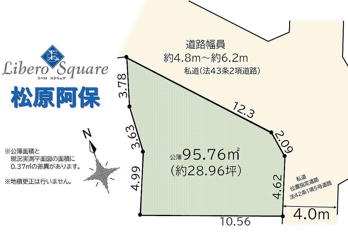北側:約4.8m~約6.2m 私道 法43条2項道路