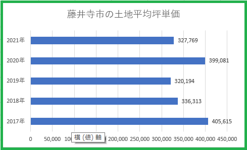 藤井寺市で取引された土地の平均坪単価の推移を過去5年分見てみましょう。
