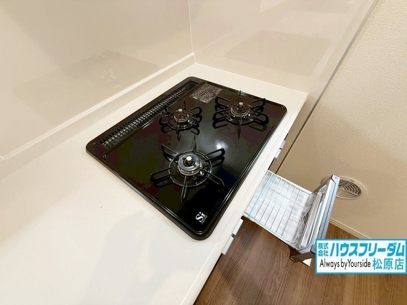 [キッチン] 3つ口コンロで同時にたくさんの料理ができます。