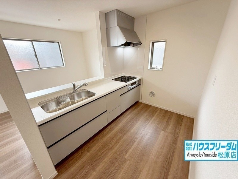 [居間] 子育て世帯に人気の対面キッチンです。