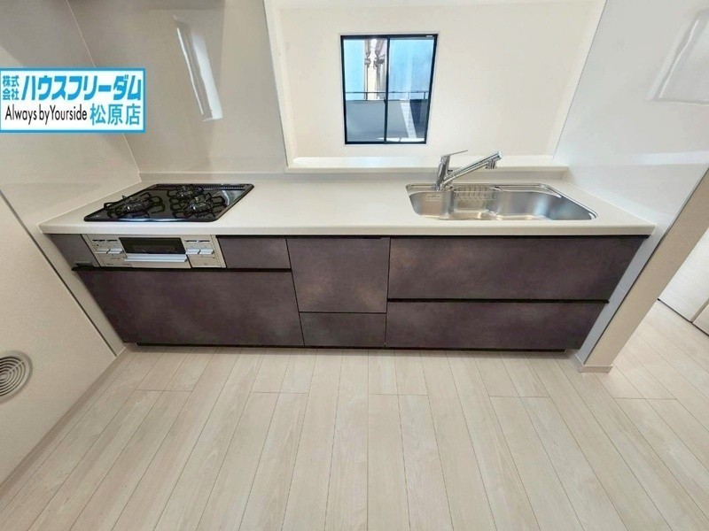 [居間] 子育て世帯に人気の対面キッチンです。