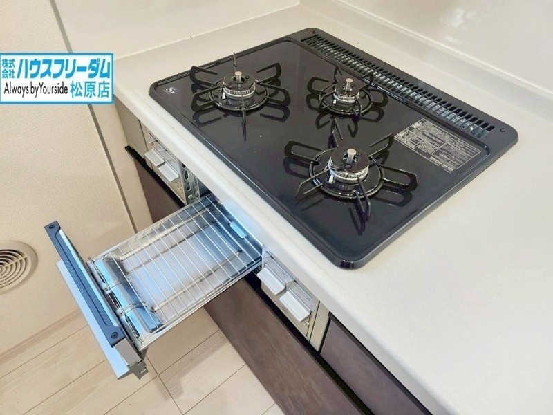 [キッチン] 3つ口コンロで同時にたくさんの料理ができます。