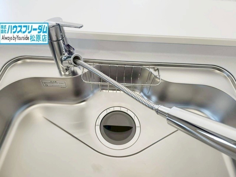 [キッチン] シャワーホースが伸びるので食器洗いもらくらく。