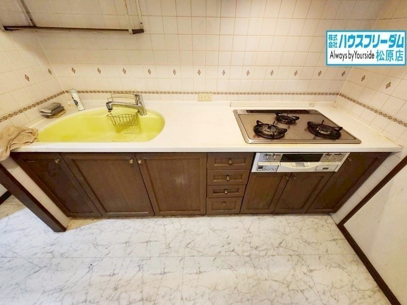 [キッチン] 壁付キッチンなのでリビングを広々使えます。