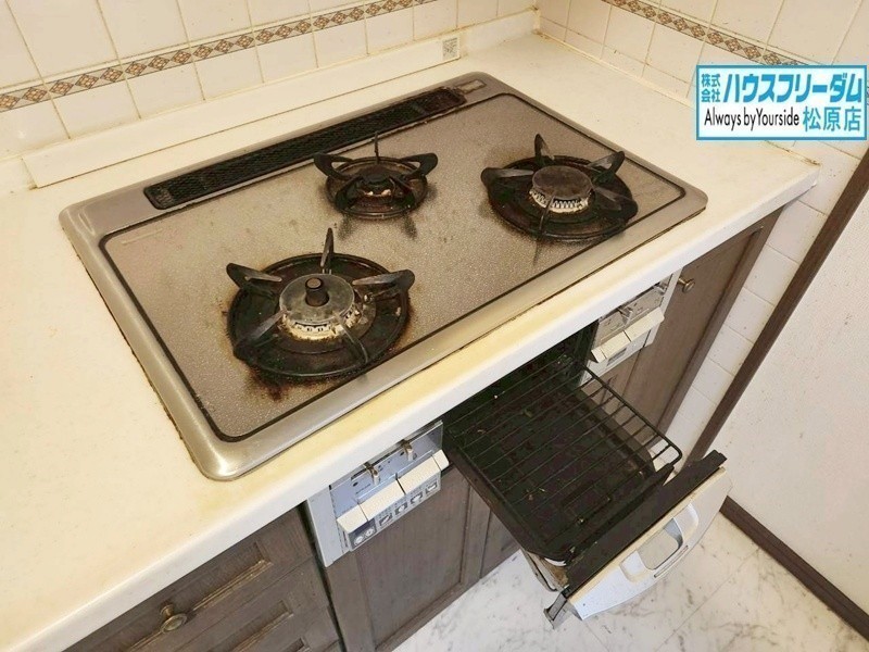 [キッチン] 3つ口コンロで同時にたくさんの料理ができます。