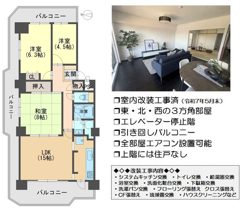 \2025年5月リフォーム済み/東・北・西の3方角部屋×3LDK