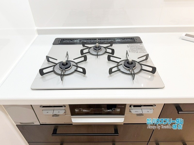 [キッチン] 3口ガスコンロで同時に複数の調理を進められます♪