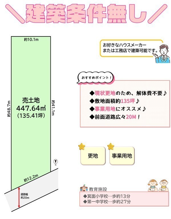 \建築条件無し/敷地広々135坪!