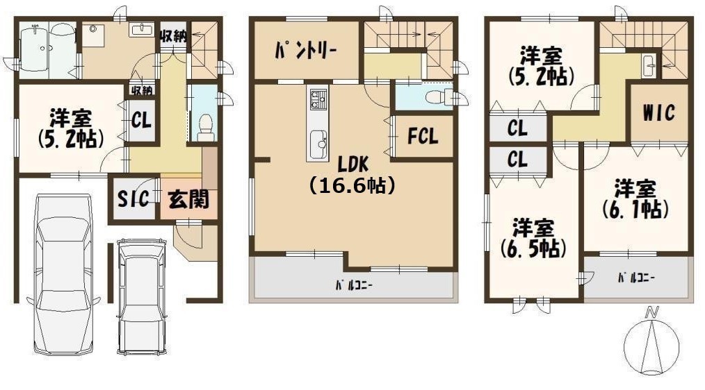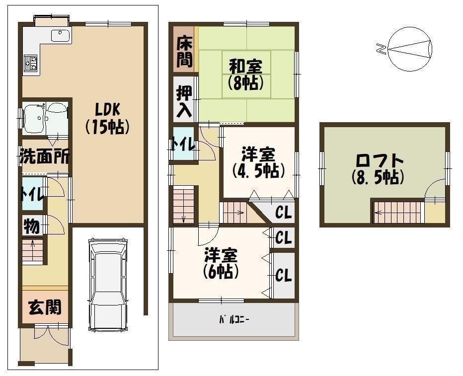 駐車場2台可の一戸建て