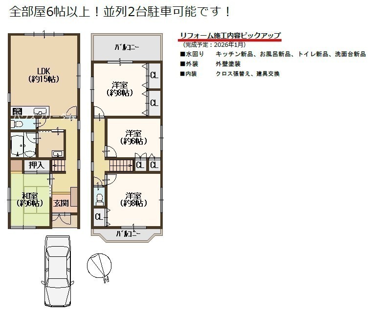 駐車場2台可の一戸建て
